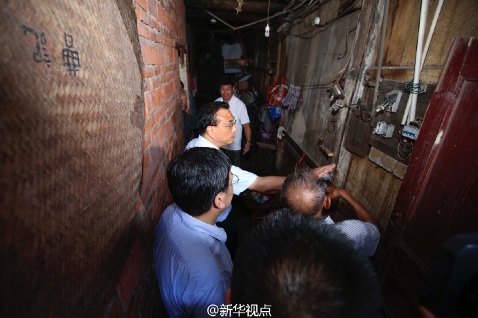 借着手电筒光穿过10米长狭窄过道,李克强22日走进江西赣州章贡区棚户居民曹大爷家。得知曹家已在这座阴暗潮湿的木结构老屋居住近百年,总理对当地负责人说,这里居住条件太简陋了,工作无论多难,资金多紧,你们一定倾全力让这里的住户尽早搬入新居。(据新华社“新华视点”微博报道)