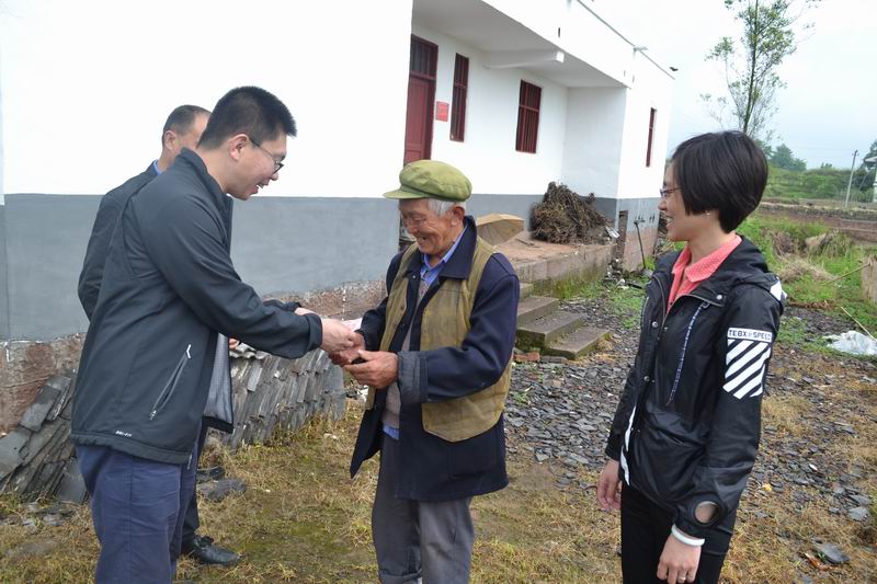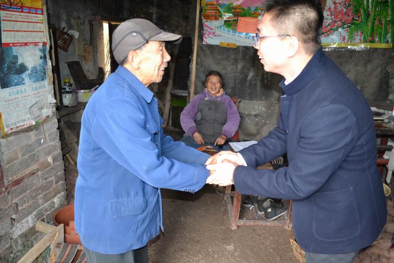 慰问贫困党员(黑夹克带眼镜男子为刘磊)——图片由刘磊本人提供