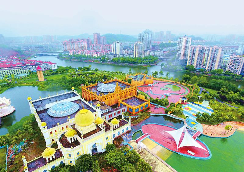 俯瞰小平故里景区,以邓小平故里旅游景区、华蓥山旅游景区为代表的红色旅游红红火火。万小军(千龙网)摄