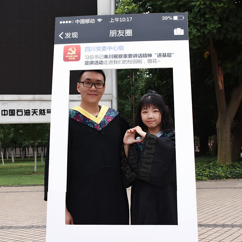 学生在相片墙留影