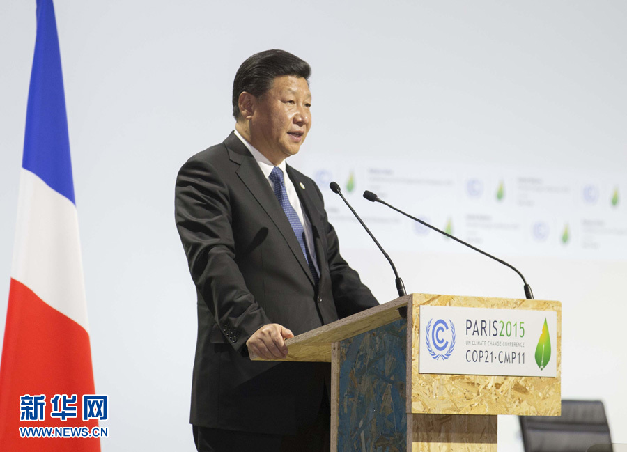 11月30日,国家主席习近平出席气候变化巴黎大会领导人活动开幕式并发表讲话。新华社记者黄敬文摄