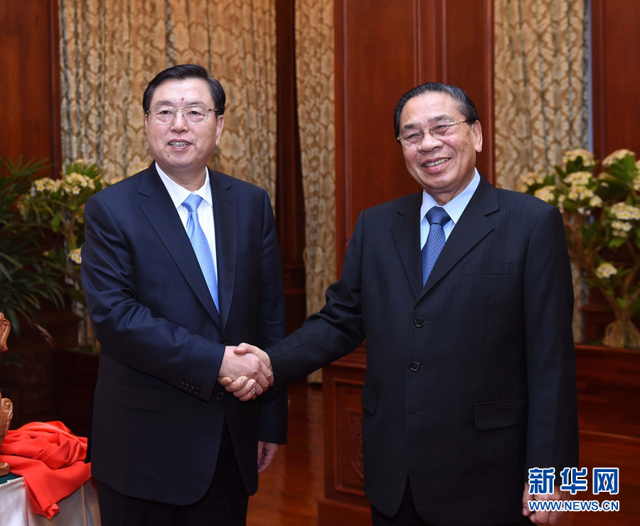 12月1日,中共中央政治局常委、全国人大常委会委员长张德江在万象会见老挝人民革命党中央总书记、国家主席朱马里。 新华社记者饶爱民摄