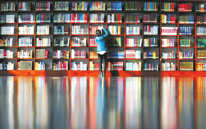 四川省图书馆新馆,四周书墙如山,让人恍若徜徉在知识的海洋。