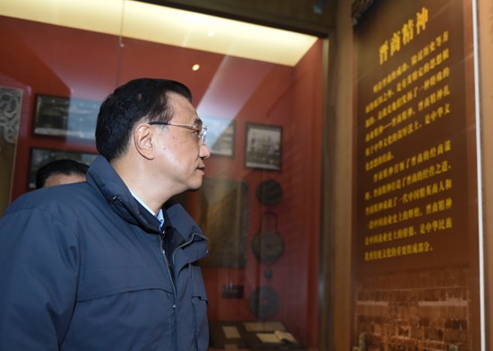 【李克强鼓励山西要开掘好两座“富矿”】李克强总理4日在山西太原考察晋商博物馆时说,山西有两座富“矿”:有形的是得天独厚的地下煤层,无形的是行走天下的晋商精神。山西当前尤其要从过度依赖自然资源,转向更多依赖人力资源,既要开掘煤炭资源,又要挖掘好晋商精神这座取之不竭、用之不尽的富矿。