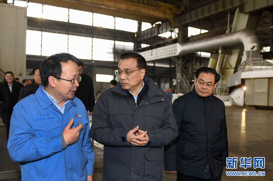 1月4日至5日,中共中央政治局常委、国务院总理李克强在山西省太原市考察。这是1月4日,李克强在太原钢铁集团考察。 新华社记者谢环驰摄