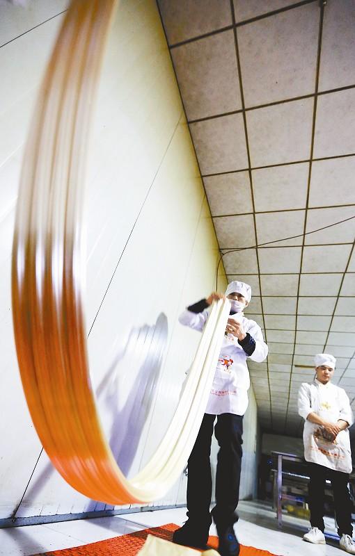 1月7日,纳溪区泡糖制作师傅在对泡糖进行拉排。