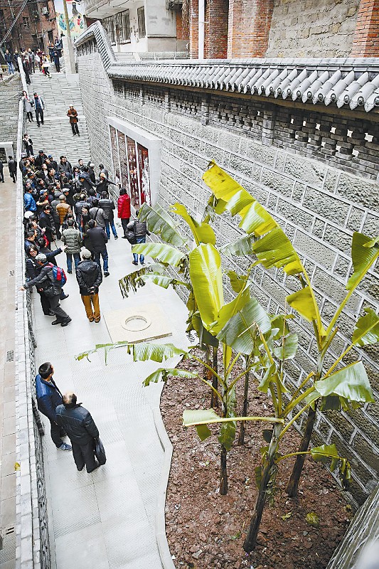 近日,国画大师张大千出生地原址地标在其家乡内江市正式亮相。1月8日,内江市民在刚竣工的张大千出生地原址地标前参观。兰自涛 摄(视觉四川)