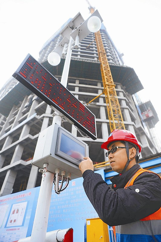 工作人员在操作集成式环境监测与喷淋联动系统。