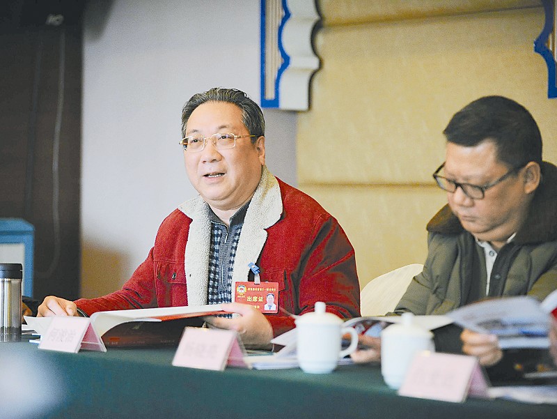 何浚治委员(左)就进一步深化医疗制度改革提出建议。