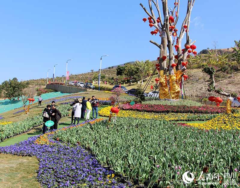 四川攀枝花阳光灿烂如夏日 游客乐赏花