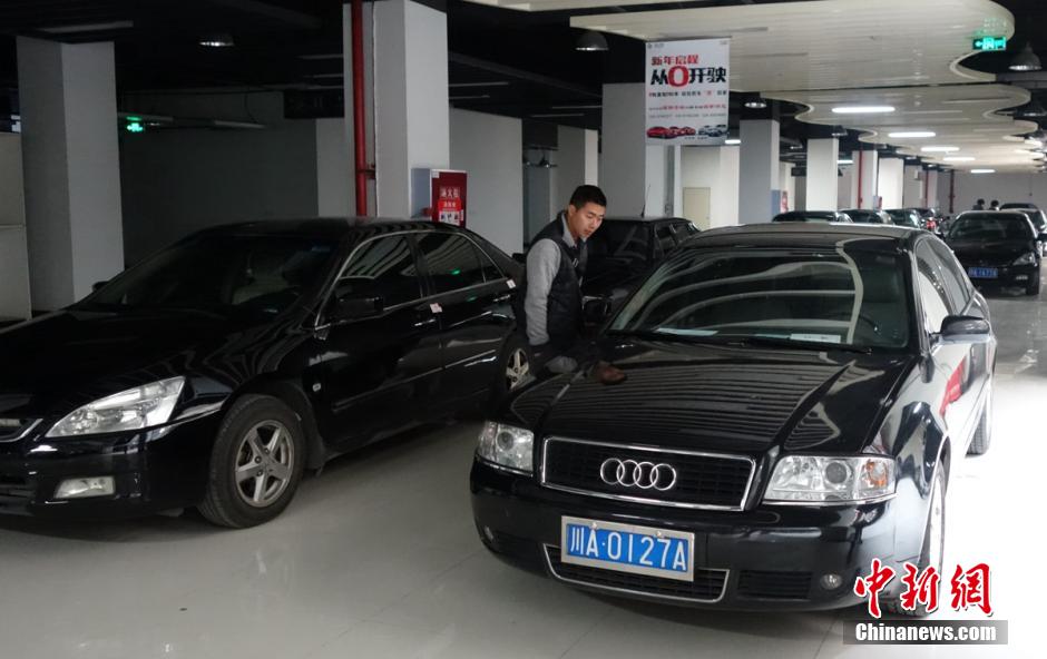 本批次拍卖的公车包括帕萨特、迈腾、别克、奥迪、桑塔纳、捷达、雅阁等10余种品牌,涵盖轿车、越野车、商务车、旅行车等多种车型。图为一辆拍卖的奥迪车吸引竞买者。图为一辆拍卖的奥迪车吸引竞买者。刘忠俊 摄