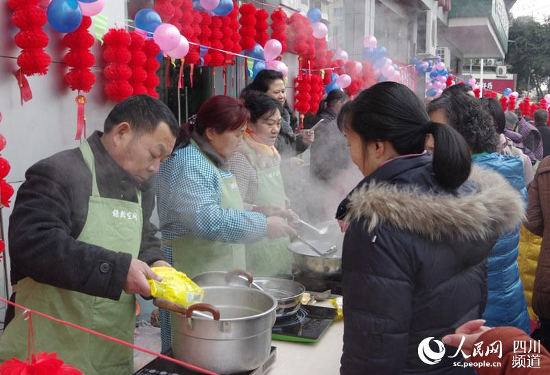 社区为居民煮汤圆。(王军 摄)