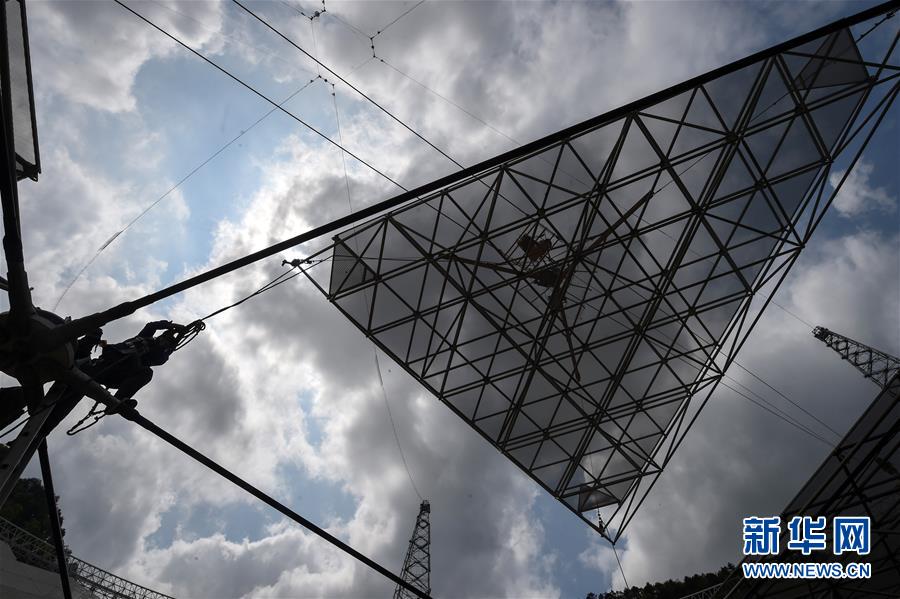 4月10日,工作人员在安装500米口径球面射电望远镜(FAST)工程的馈源舱。截至4月10日,正在贵州省平塘县建设的世界最大单口径射电望远镜——500米口径球面射电望远镜(FAST),已完成4185块反射面面板安装,完成比例达94.04%,工程进入收尾阶段。据悉,FAST的反射面总面积约25万平方米,用于汇聚无线电波供馈源接收机接收,反射面安装工程预计将于2016年5月中旬完成。新华社记者欧东衢摄 共6条首页上一页..23456下一页尾页共6页