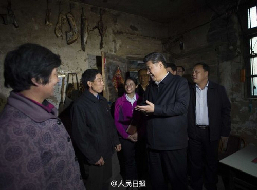 走进村民陈泽平家两间简陋的房子,总书记仔细察看,询问家里的情况。身体还好吗?这个季节屋里还有点冷吧?家里种几亩地?种的茶叶几年能收获?养了几头猪?猪肉价格还可以吧?总书记问得十分细致。看到床边堆着几包稻谷,总书记说,这里又住人又是仓库啊,并问陈泽平,存的粮食够吃多长时间。总书记还指着屋顶说:“这里拉的电线可有点乱啊。”村干部递上《建档立卡贫困户基本情况调查表》。“移民直补”“公益林补贴”“计生奖”“劳务收入”……总书记一边念着表格上的项目,一边向陈泽平了解贫困户搬迁等支出和补贴情况,问他愿不愿意搬迁到山下去。陈泽平回答说:“党的这个政策好,我欢迎。”