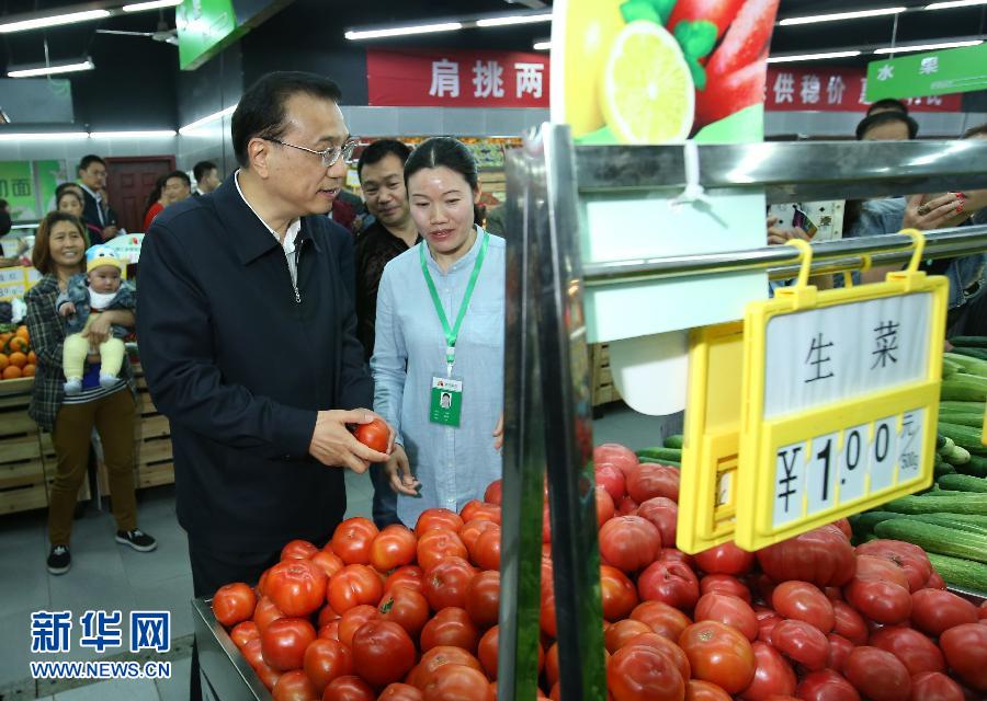 4月24日至26日,中共中央政治局常委、国务院总理李克强在四川考察。这是4月26日,李克强在成都益民菜市了解市场供应、农药残留检测等情况。新华社记者 庞兴雷 摄