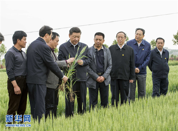 4月24日至27日,中共中央总书记、国家主席、中央军委主席习近平在安徽调研。这是4月25日下午,习近平在滁州市凤阳县小岗村察看小麦长势。 新华社记者李学仁摄