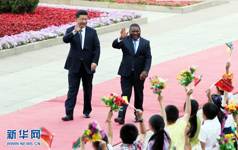 5月18日,国家主席习近平在北京人民大会堂同莫桑比克总统纽西举行会谈。这是会谈前,习近平在人民大会堂东门外广场为纽西总统举行欢迎仪式。新华社记者姚大伟摄