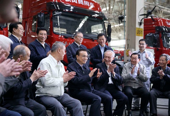 李克强23日在湖北十堰考察东风商用车重卡新工厂,专门看望了二汽建厂老领导、老专家、老工人。总理说,你们是二汽的“元勋”,也是中国汽车工业的先驱,在大山沟里披荆斩棘建起一座现代化汽车城,对中国装备制造业的发展功不可没。