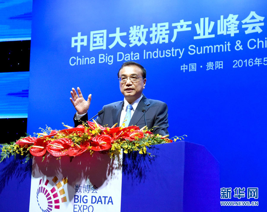 5月25日,中国国务院总理李克强在贵阳出席中国大数据产业峰会暨中国电子商务创新发展峰会开幕式并致辞。 新华社记者 饶爱民 摄