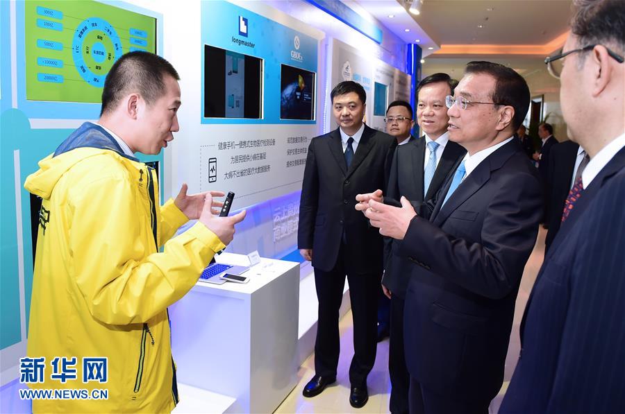 5月25日,中国国务院总理李克强在贵阳出席中国大数据产业峰会暨中国电子商务创新发展峰会开幕式并致辞。这是开幕式前,李克强参观贵州大数据成果展并与参展商交流。新华社记者张铎摄