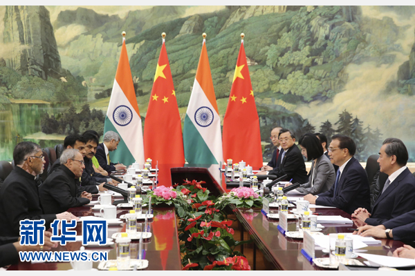 李克强表示,中印同为世界文明古国,也是两个最大的发展中国家,都坚持独立自主的外交政策,彼此发展互为机遇。习近平主席同你成功互访,有力推动了两国关系发展。中方愿同印方保持高层交往,增进战略互信,深化各领域务实合作,密切人文交流,妥善处理分歧,就重大国际和地区问题加强协调,使中印关系的发展有利于亚洲的繁荣进步和世界的和平稳定。