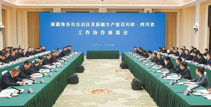 4月7日,新疆维吾尔自治区及新疆生产建设兵团·四川省工作协作座谈会在成都举行。 四川日报全媒体记者 欧阳杰 摄
