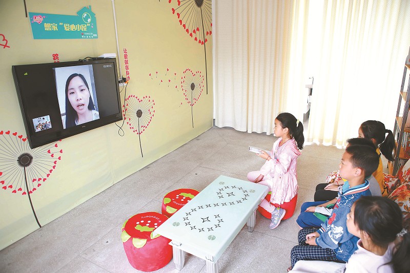 6月7日,广安市首个“想家·爱心小屋”在广安区方坪乡远成学校建成投用。图为一名留守学生与远在千里之外的母亲视频通话。
