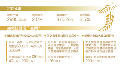 良种释放增产潜力。目前,我国农作物良种覆盖率在96%以上,自主选育品种面积占比超过95%,小麦则为100%。在今年夏粮生产中,各地选育推广优新品种,挖掘单产提升潜力。茹振钢介绍,在豫南地区,得益于抗赤霉病小麦品种的普及推广,今年病害仅呈点片发生。