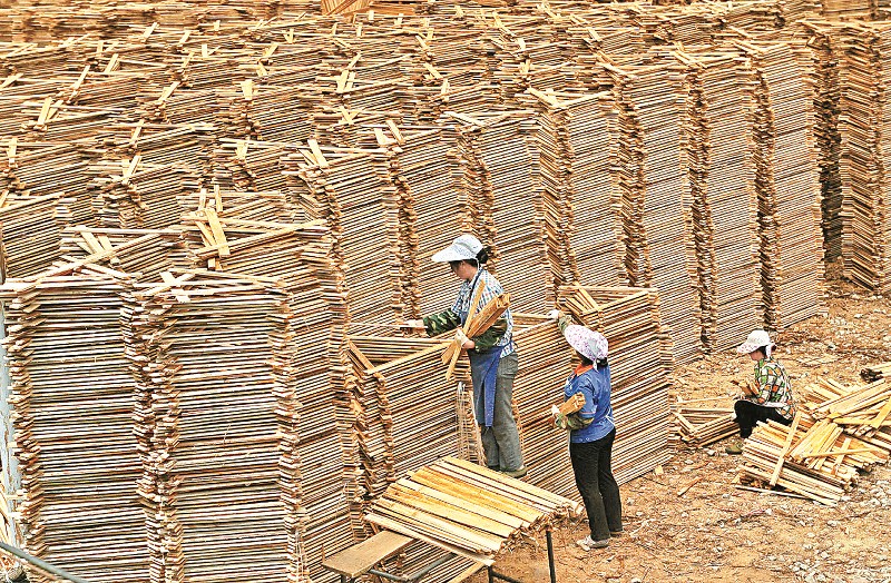 6月13日,沐川县建和乡村民在家门口的林产业加工企业务工。在乌蒙山区连片扶贫开发中,沐川县依托竹林资源富集优势,采取“企业+基地+农户(贫困户)”联动模式,生产的竹木制品出口到日本、韩国等国。 本报记者 吴传明 摄