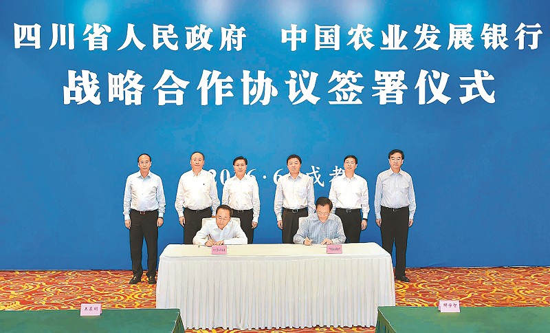 六月十六日,四川省人民政府与中国农业发展银行战略合作协议签署仪式在成都举行。本报记者毛漫丁摄