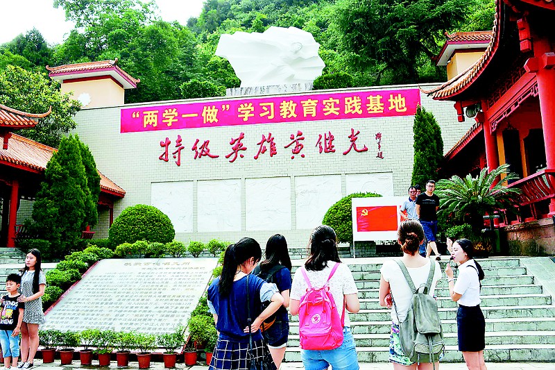 6月19日,络绎不绝的参观者来到特级英雄黄继光纪念馆,有的在听解说、有的在党旗下重温入党誓词。在开展“两学一做”学习教育中,很多基层党支部、共产党员或集体、或个人来到德阳市中江县特级英雄黄继光纪念馆,缅怀英雄事迹,弘扬英雄精神。 寇元林 摄