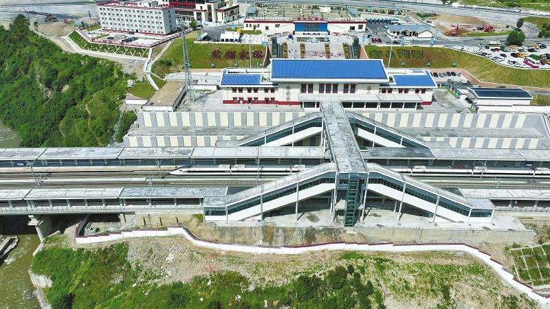川青铁路起自成都平原至青藏高原,是我国“八纵八横”高铁网中兰州、西宁至广州通道的重要组成部分。全线分段建设,此前,成都东至镇江关段、海东西至西宁段已投入运营,此次开通的镇江关至黄胜关段位于松潘县境内,设有镇江关站、松潘站、黄龙九寨站和黄胜关站4座车站,九寨沟景区由此成功接入“动车版图”。