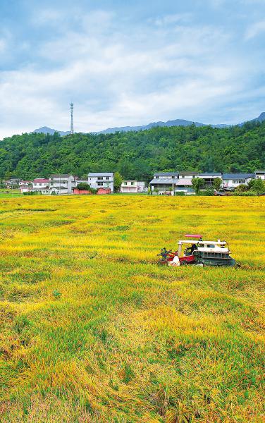收割机田间作业。 冉怡男 摄