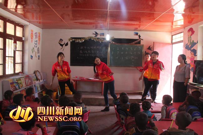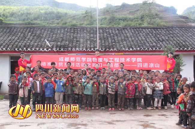 据悉,“走进凉山——我们一直都在”是成都师范学院坚守“立德树人”职责、让学生践行“爱、真、笃、为”校训的社会实践活动,已经持续了几年。杜燕讲到,这次结合学校“两学一做”学习教育,以党建带团建,老师带领党员学生和团员干部走进山区零距离接触大山深处孩子们,使学生得到锻炼和成长。在这里,我们收获了很多感动。杜燕说,学校不少孩子都让她们影响深刻。“有一个小男孩叫吉木石吾。我们给他戴好红领巾,问他长大以后想要做什么,他说他要去布拖当警察,再问他想不想去更远的地方呢,他摇了摇头;问他想不想当解放军呢,他也摇了摇头。老师在一旁说他们一家都没有出过大山,在他们的认知世界里布拖就是最遥远的地方,就是全世界。”杜燕感触地说道,就是这样以一个个朴素的孩子,才让我们感到,要把这样的活动坚持下来,带着孩子们去认识山外的世界。