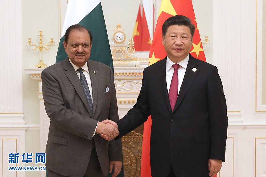 6月23日,国家主席习近平在塔什干会见巴基斯坦总统侯赛因。新华社记者马占成摄