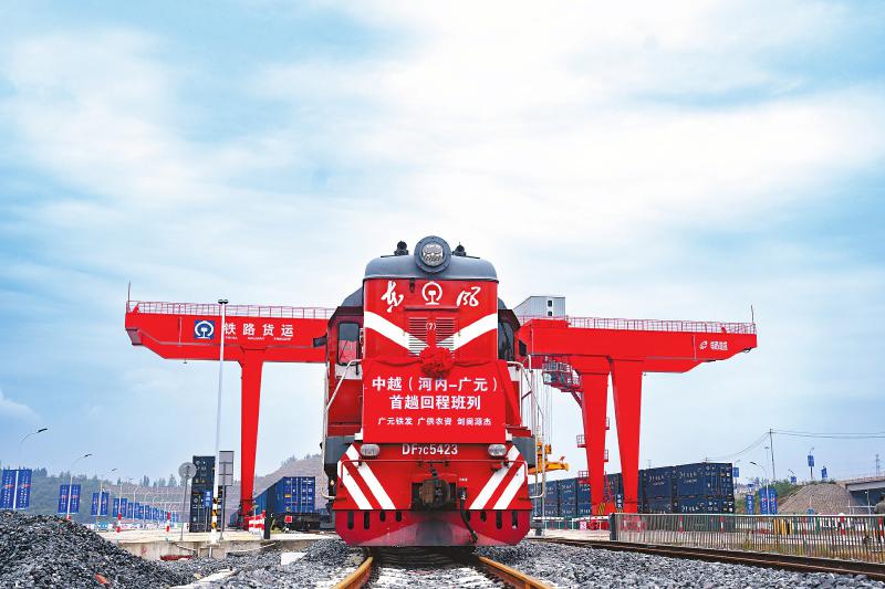 近日,中越(河内—广元)首趟回程班列顺利抵达。 广元国际铁路港管委会供图
