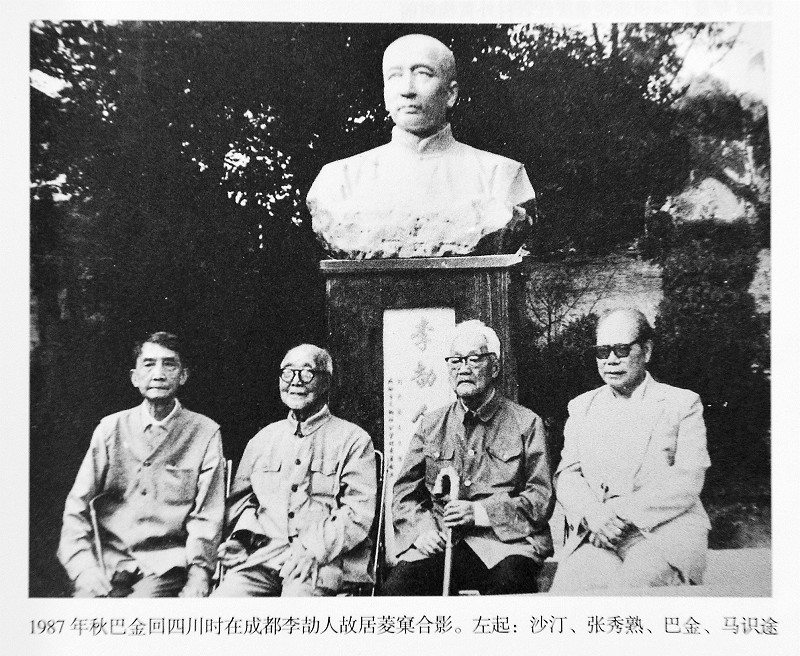 1987年秋,巴金回四川时在成都李劼人故居合影(右一为马识途)。 (以上为资料图片)