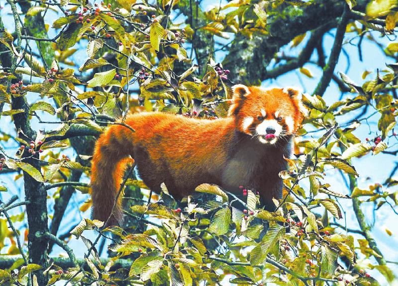 11月5日,小熊猫在四川瓦屋山国家森林公园觅食。