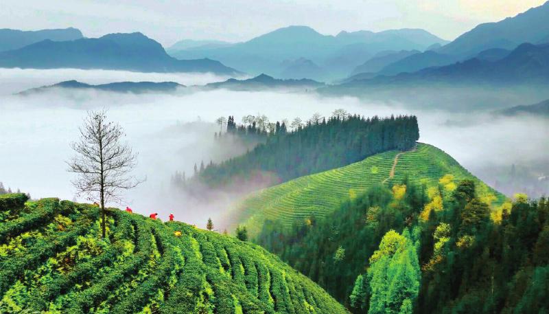 产业融合是城乡融合的基础支撑。近年来,洪雅坚定“生态优先、绿色发展”方向,大力发挥优势特色产业——茶产业,按照“优基地、精技艺、强加工、育品牌、促融合”工作思路,稳步推进“一杯茶”工作。截至目前,全县茶叶种植面积达30万亩,其中绿色、有机茶认证面积2.7万亩,年综合产值83亿元,连续6年被评为中国茶业百强县,茶叶生产规模、茶产业综合实力居全省前列。