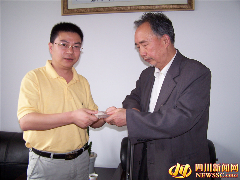 侯方杰(右)交纳2万元特殊党费支持抗震救灾