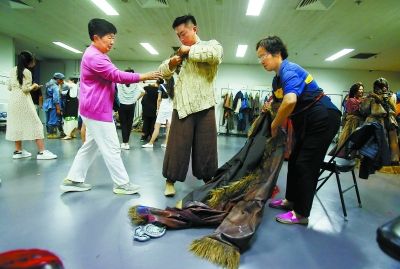 “如果舞台上可以戴计步器,他们的步数肯定都很高。”看着演员们上场、跑动、下场、换装,后台的工作人员们这样打趣着。(记者 韩轩 摄/记者 方非)