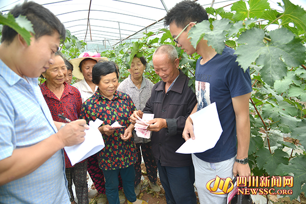 葡萄园老板给村民发工资(图片由恩阳区委宣传部提供)