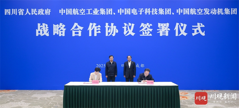 4月21日,四川省人民政府与中国航空工业集团、中国电子科技集团、中国航空发动机集团在成都分别签署战略合作协议。省委书记、省人大常委会主任王晓晖,省委副书记、省长施小琳,国家国防科工局党组书记、局长单忠德出席签署仪式。