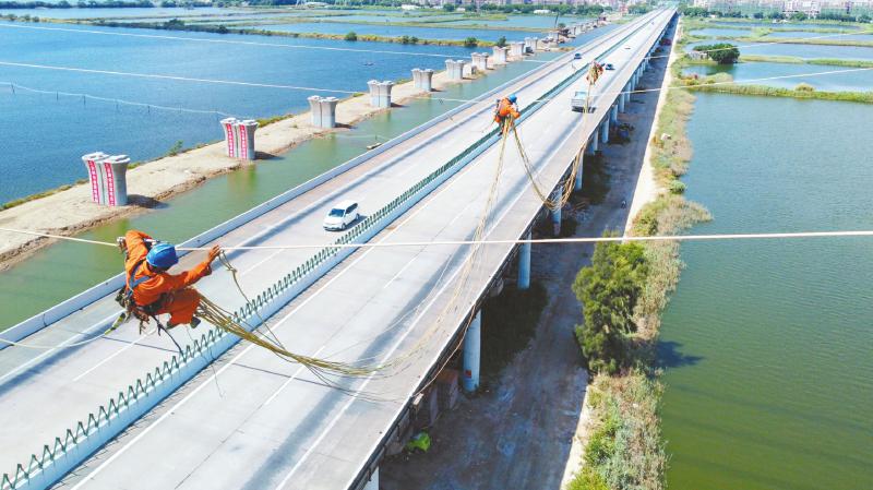 岳池输变电工人正在高空作业。岳池县委宣传部供图