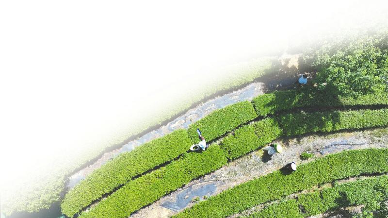 5月19日,三清庙村茶园里,村民手持采茶机在采收夏秋茶。马娟 摄