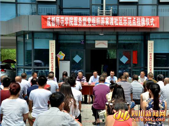 四川新闻网成都7月14日讯(记者 陈淋)近日,成都师范学院服务型党组织建设暨“两学一做”党员志愿服务成都市温江区天府街道工委游家渡社区示范点正式挂牌。成都师范学院心理学院党总支书记卢雄教授与游家渡社区党支部书记唐训清同志还在挂牌仪式上签订了“两学一做”、深化“校地共建”服务型党组织建设社区示范点服务协议书。