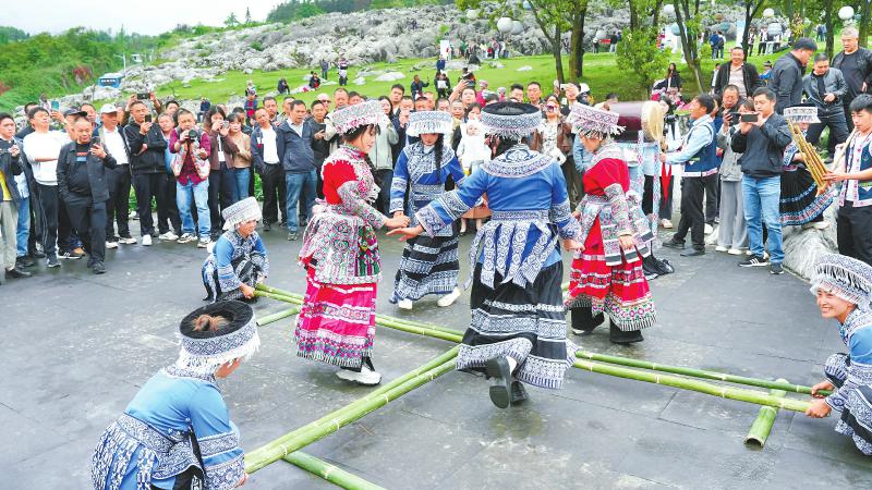 宜宾兴文花山节上,苗族民俗游戏吸引游客围观。宜宾观察 罗顺 摄