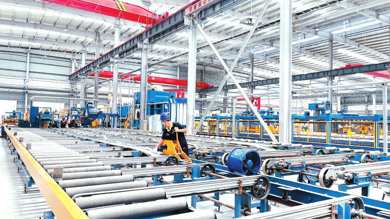 乐至奋安新型高端铝合金型材西南基地,工作人员正在生产线上忙碌。田姣摄