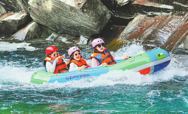 游客在瓦屋山峡谷体验漂流。 洪雅县文广旅局供图