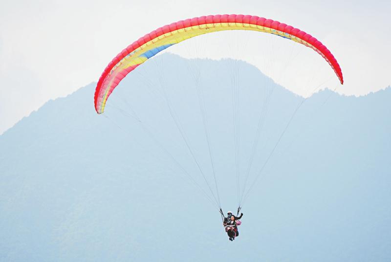 游客在瓦屋山滑翔伞飞行营地体验低空飞翔。 洪雅县文广旅局供图